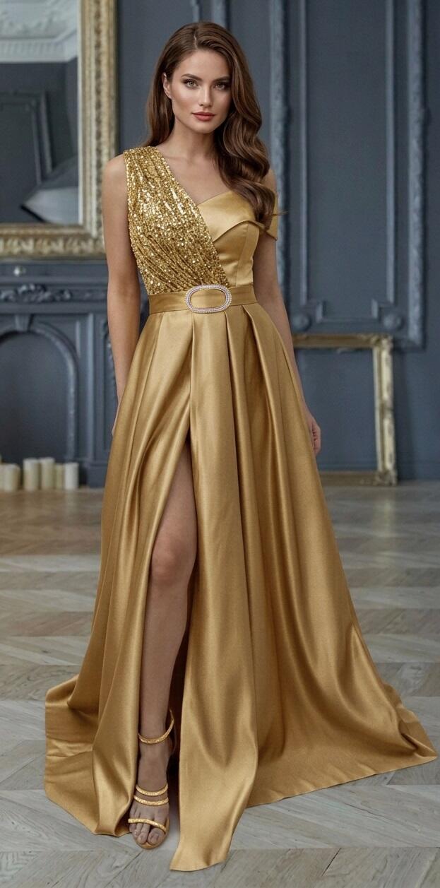 ABITO LUNGO IN RASO DI ALTA QUALITA' CON SPACCO LATERALE E CUCITURE VERTICALI CON UNA PARTE DEL CORPETTO COMPRESA LA SPALLINA IN MICRO PAILLETTES FODERATE MENTRE NELL'ALTRO LATO LA SPALLINA RIMANE APPOGGIATA SUL BRACCIO .LEGGERE COPPE GIA' INSERITE PER UNA VESTIBILITA' PERFETTA . CERNIERA POSTERIORE CINTURA CON FIBBIA IN METALLO E STRASS COMPRESA . ABITO BELLISSSIMO REALIZZATO PERFETTAMENTE E DAL SICURO EFFETTO WOW