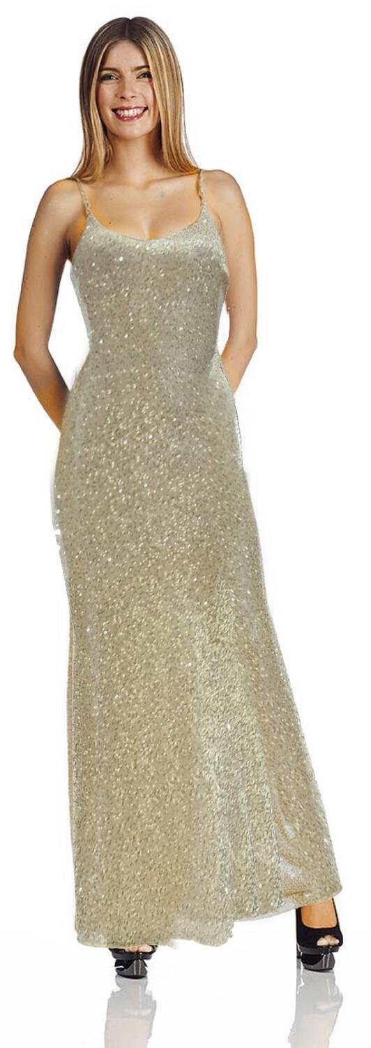 ABITO LUNGO IN MICRO PAILLETTES COLOR PLATINO - BEIGE ABITO COMPLETAMENTE FODERATO IN MAGLINA TONO SU TONO,LEGGERE COPPETTE GIA' INSERITE E PARTICOLARE DESIGN A SIRENA LEGGERMENTE SVASATO IN FONDO.CERNIERA POSTERIORE CENTRALE PER ESSERE INDOSSATO CON PRATICITA' .SCHIENA COPERTA UGUALE AL DAVANTI .VESTIBILITA' OTTIMA DATA L'ELASTICITA' DELLA STOFFA .
